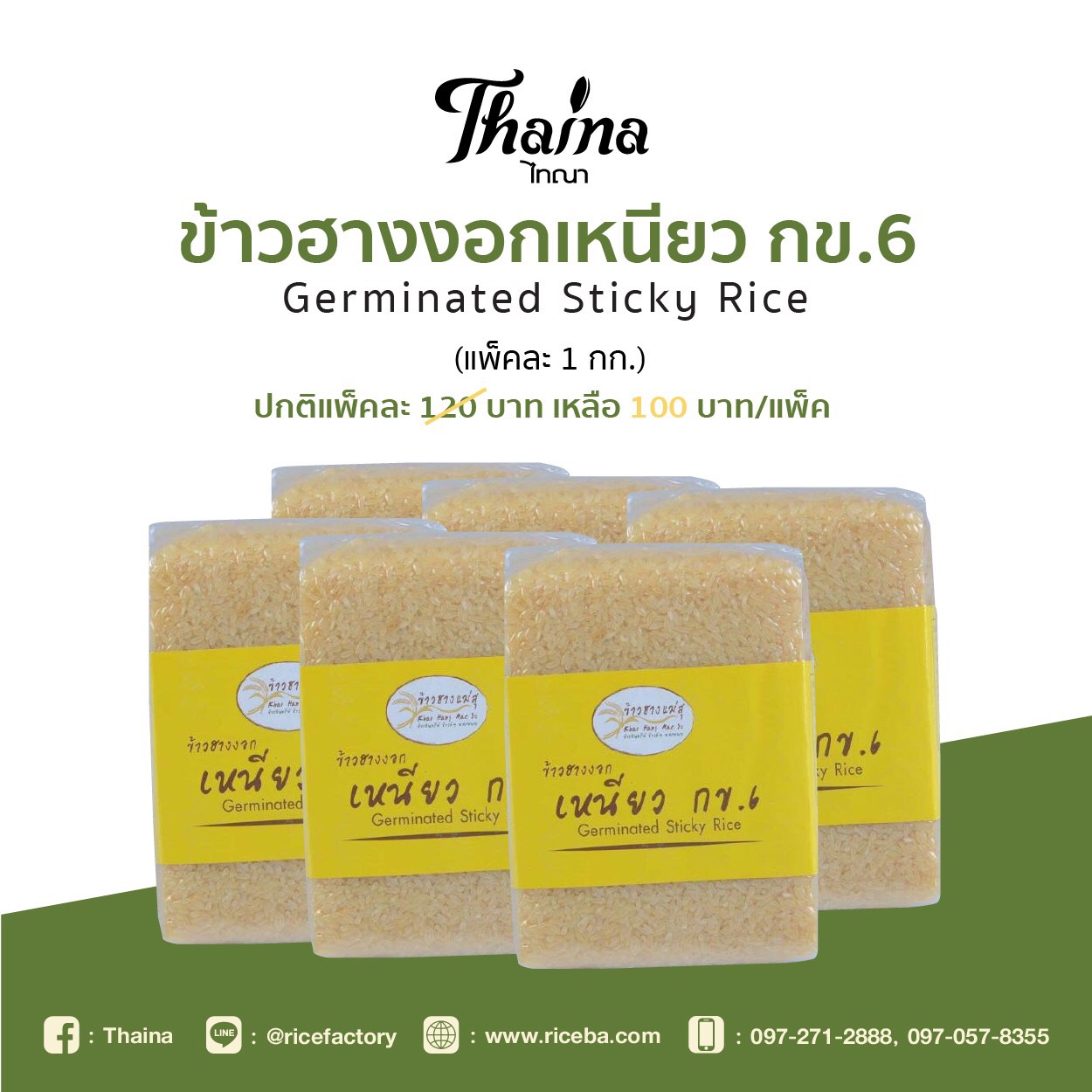 ข้าวฮางงอกเหนียว กข.6 Germinated Stiky Rice แพ็คละ 1 กก.